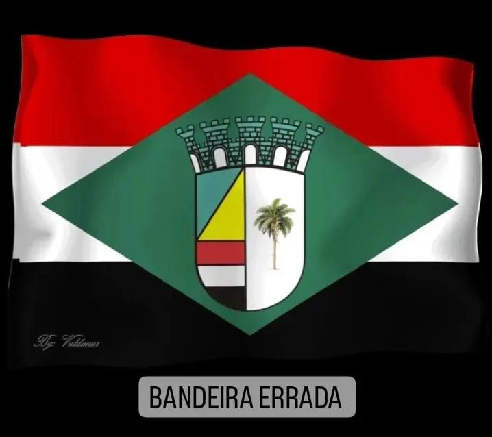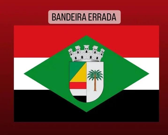 A bandeira é vilipendiada à luz do dia, na fachada dos órgãos públicos, em desfiles cívicos. Uma farsa, nascida da ignorância e da Internet, ocupa o lugar da verdadeira, apresentando ao centro um brasão distorcido do brasão oficial da cidade. Ademais, embora apresentem semelhanças, o centro da bandeira e o brasão oficiais são distintos.