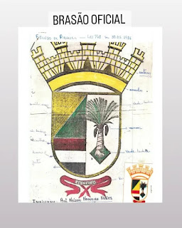 O Brasão, instituído pela Lei 748/1986, de autoria do professor Nelson de Jesus Nogueira Nunes, constitui-se da ameia existente na bandeira, divida ao meio, ficando à esquerda a palmeira e à direita, na parte superior, as cores, verde e amarelo dispostas em dois triângulos escalenos que juntos formam um retângulo, abaixo do qual o espaço é preenchido por três listras horizontais nas cores vermelho, branco e preto.