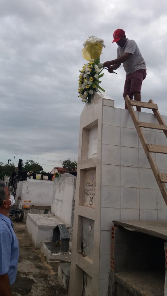 Ao chegar no cemitério, os acadêmicos depositaram flores no túmulo do homenageado em nome da APLAC, num ato de singela, porém imensa gratidão a quem tanto impulsionou as letras e a educação, não somente em Pinheiro, mas em toda a região da baixada maranhense, por meio do Colégio Pinheirense, do qual é co-fundador, juntamente com Dom Afonso Maria Ungarelli.